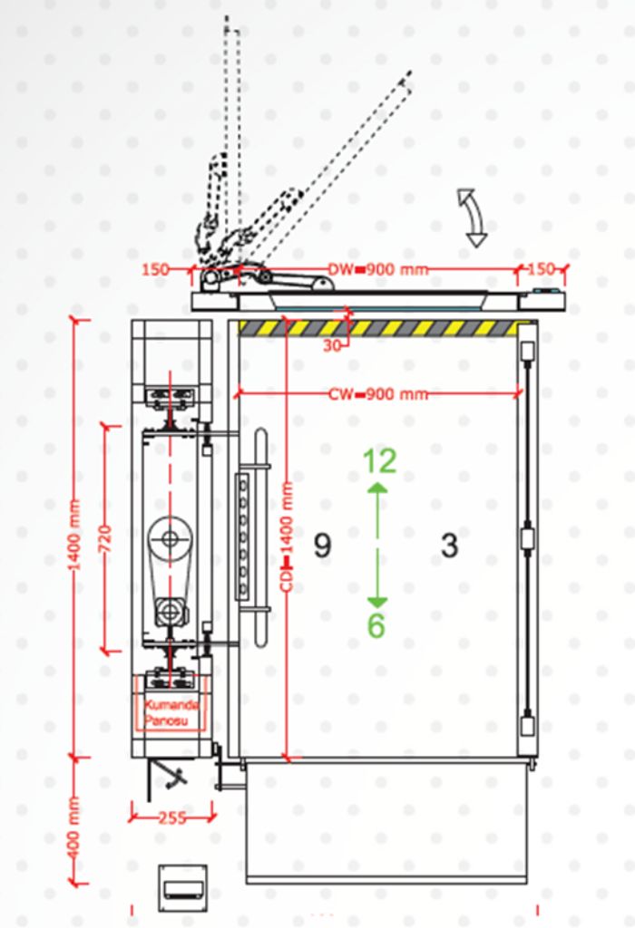 - kabina dimenzija: 900 x 1400 mm – 1400 x 1400 mm (ostale dimenzije na upit)